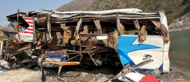 सडकबाट खसेको बस नदीमा डुबेको छ ।